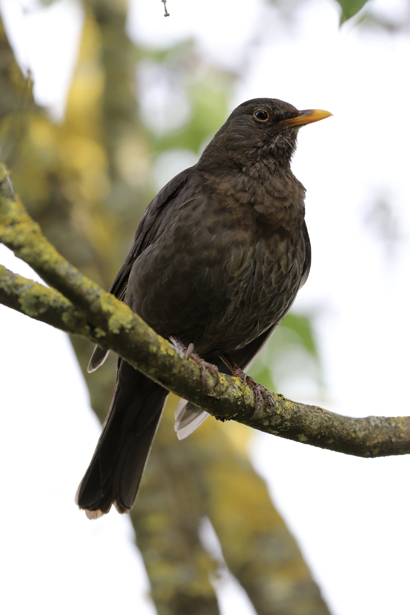 Das hier ist ein Amsel Weibchen Sie badet immer mehrmals Ein Amsel Männchen gab es auch und vorm Vogelhaus Es ist übrigens immer das selbe Amsel Weibchen, da war se dann wieder trocken und abends vom Balkon im Baum ganz oben eine Liebelle gab es am Teich auch, diese reagieren auch auf jede Bewegung. Wenn man eine Weile still sitzt kann man auch ein paar Bilder machen, allerdings nur mit dem Tele und nicht mit dem Makro, weil man dafür dann doch zu nah ran müsste.