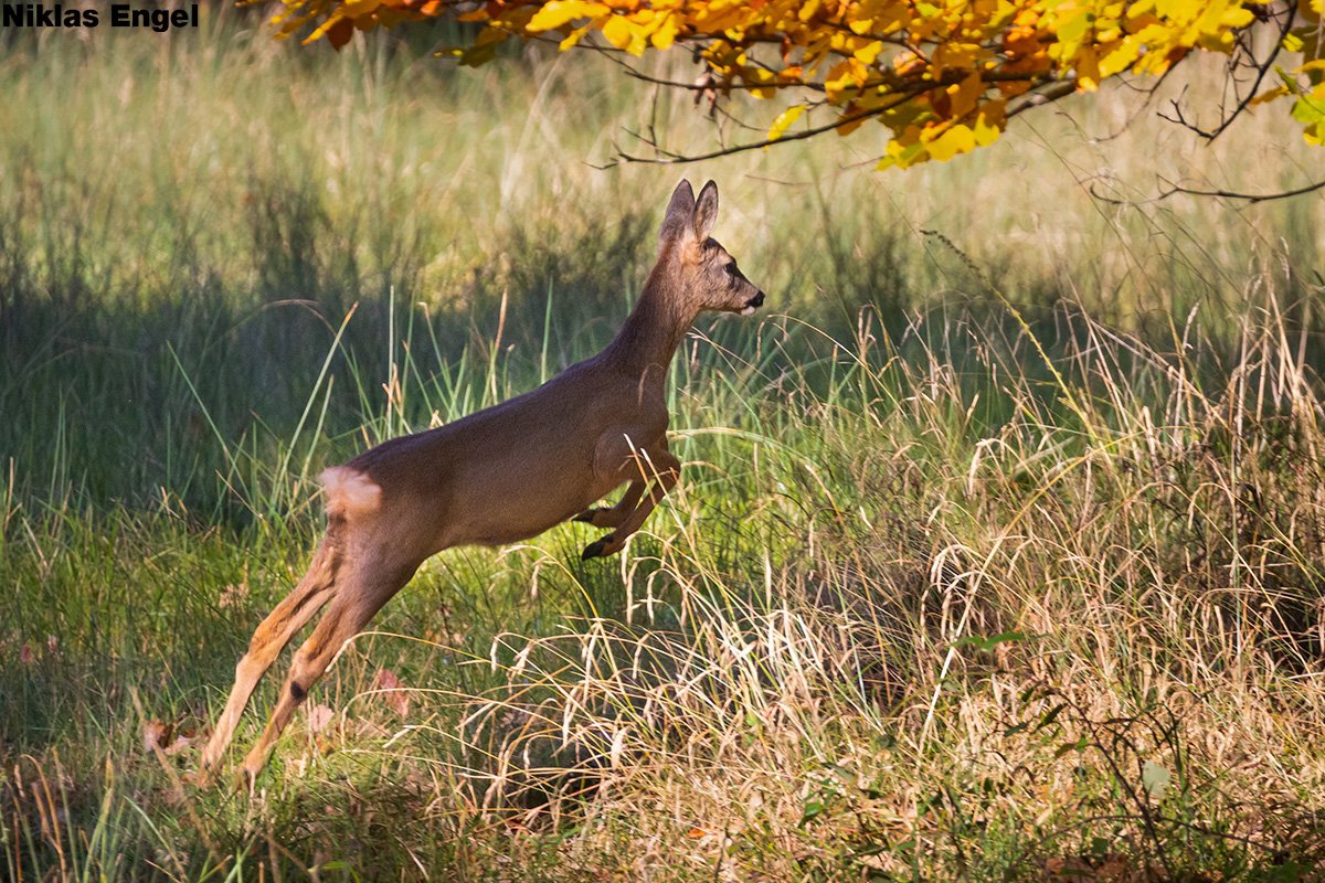 Früh morgens lassen sich auch kleine Hirsche aus dem angrenzenden Waldgebiet im Naturschutzgebiet blicken: