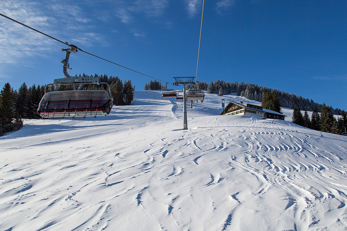 Die Imbergbahn mit Oberstaufen im Hintergrund: