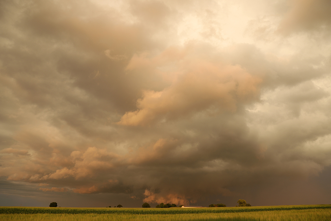 Ich hatte das 18-135 mm auf der Kamera, meistens bei 18 mm - das 10-18 wäre im Nachhinein die bessere Entscheidung gewesen, um die ockerfarbene Wolke, die sich nicht nur in der Helligkeit, sondern tatsächlich auch in der Farbe vom restlichen Himmel abhob, besser in ihrer ganzen Ausdehnung einzufangen. Objektivwechseln hätte ich aber in dem Regen auch nicht wollen, jeder einzelne Tropfen hinterließ Staubflecken, als wären es Spritzer aus einer dreckigen Pfütze. Ich glaub´, ich hab zu Hause länger den Staub aus den Rillen der Zoom- und Fokusgummierung geputzt, als ich unterwegs war